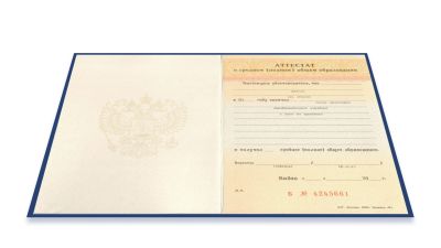 Аттестат школы за 11 классов, доступные с годами выдачи с 1994 по 2006. Используем оригинальные бланки ГОЗНАК с подписями и печатями, полная комплектация включает корочку, бланк аттестата и приложение.